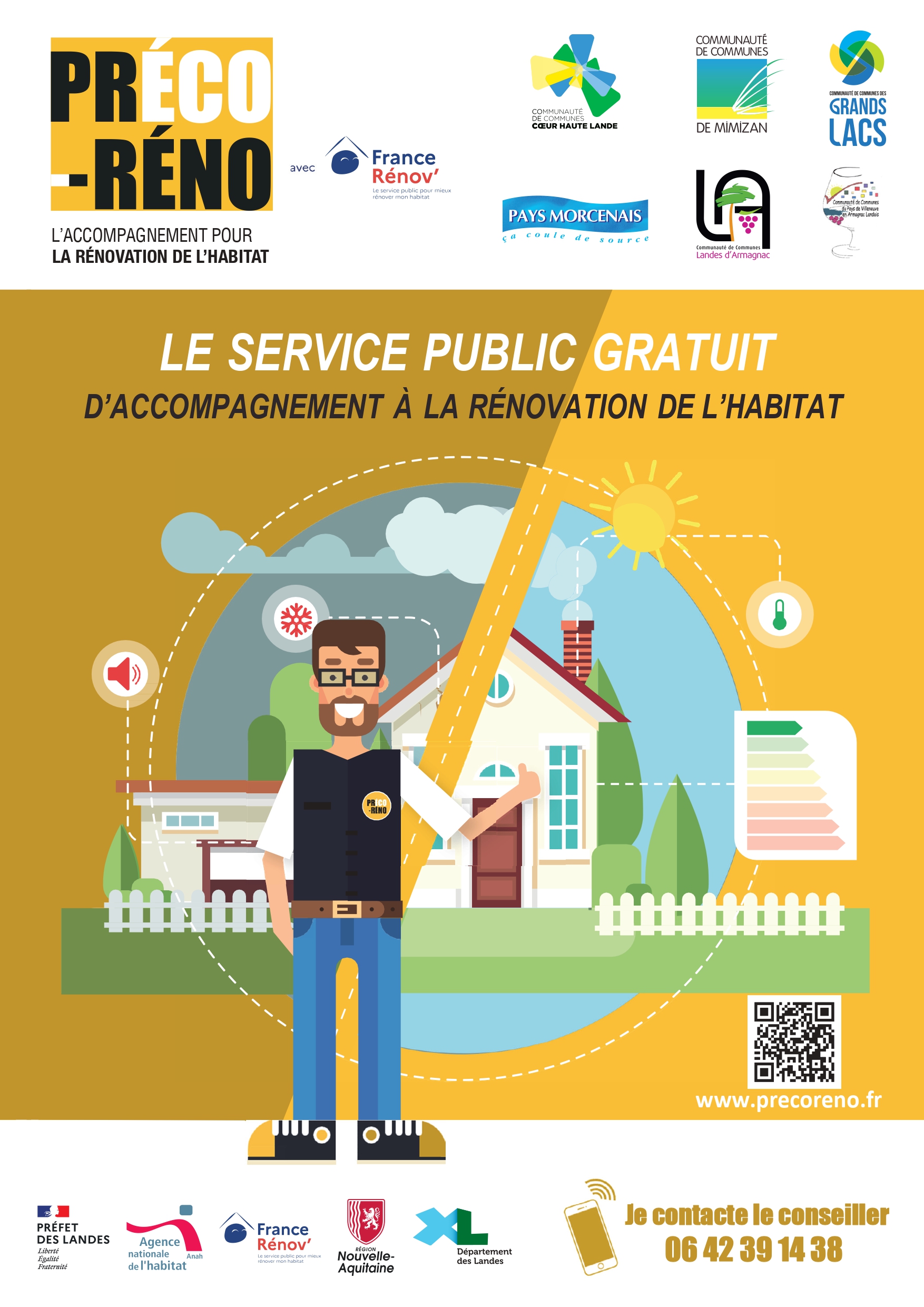 PrécoRéno et les 6 Communautés de communes tiennent à préciser qu’ils ne cautionnent aucun démarchage, que ce soit par téléphone ou à domicile, proposant des travaux de rénovation.